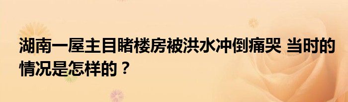 #湖南一屋主目睹樓房被洪水沖倒痛哭#房子是很多人一生的寄托,承載了太多的東西,近日#湖南一屋主目睹樓房被洪水沖倒痛哭#的新聞讓人心酸,近幾天湖南遭受暴雨襲擊,不少人的家園就此被毀,當時的情況是怎樣的?