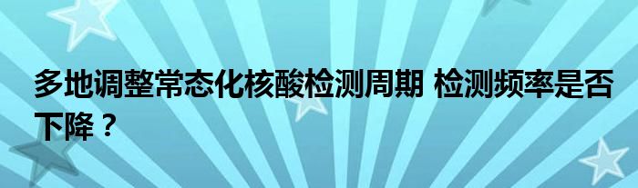 新聞媒體報道稱,6月21日起,多地根據疫情防控形勢調整了核酸檢測的周期,檢測周期從三天一檢延長到五天一檢,有的則暫停常態化檢測。