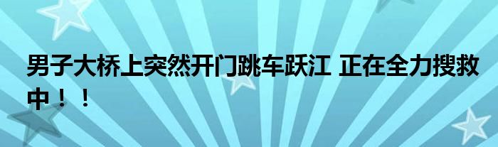 【男子大橋上突然開門跳車躍江】今日,一篇關于男子大橋上突然開門跳車躍的報道上了各大熱搜榜,引得網民關注和熱議。重慶一男子大橋上突然開門跳車躍江,官方:已關注,公安機關正在調查。
