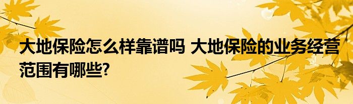 大地保險還是比較靠譜的。1.大地保險是經國務院允許,保監會許可建立的全國財產保險公司,分支機構遍布全國不同省份;2.公司保費規模持續增長,經營包括汽車保險、健康險、家財險、旅行險等多種險種,類型豐富,實用價值較強,可確保用戶日常生活中的各個方面。截止到二零一九年末,大地保險公司償付水平充足率為371%,償付水平高過監管要求,持續數年得到A類評級,公司保費規模持續增長且持續穩定發展。因此大地保險還是比較靠譜的。