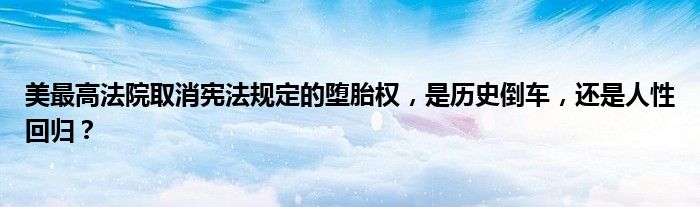 美最高法院取消憲法規定的墮胎權,是歷史的倒車,還是人性的回歸?