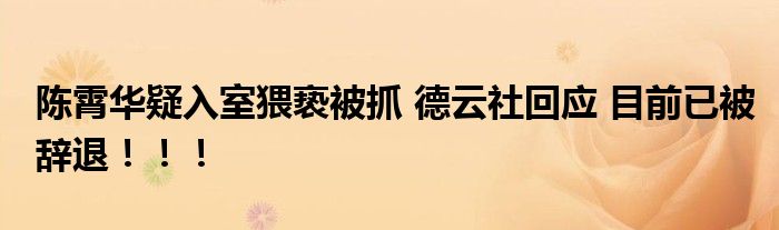 6月26日晚,網傳德云社陳霄華疑似醉酒后入室猥褻女住戶未遂被抓。隨后德云社回應目前無法與陳霄華取得聯系,但接到了警方的協助電話,基本可確定陳某擅闖他人住宅。德云社宣布辭退陳霄華,并向受害人誠懇致歉。