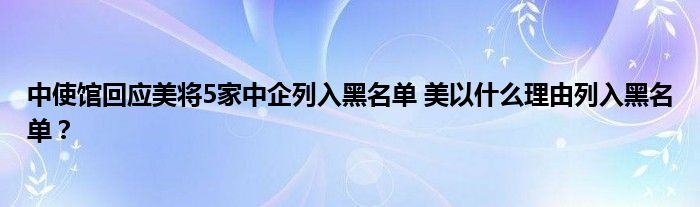 【中使館回應美將5家中企列入黑名單】據外媒29日報道,拜登政府當地時間28日將5家中國企業列入貿易黑名單,理由是這些中企“涉嫌支持俄羅斯軍事和國防工業”。中國駐美使館指出,相關制裁違反國際法。
