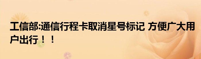 【工信部:通信行程卡取消星號標記】據工信部消息:為方便廣大用戶出行,即日起取消通信行程卡“星號”標記。你行程卡的星星消失了嗎?