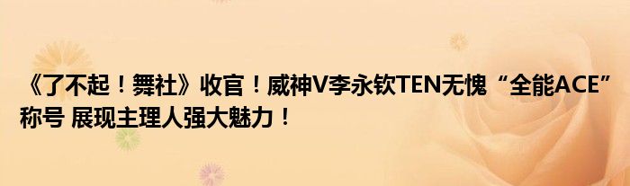從突出自己個人特色的大秀舞臺《Birthday》開始,到與錘子組隊員們充滿力量的合作舞臺《不破不立》,再到與主理人程瀟充滿默契的合作舞臺《只羨鴛鴦不羨仙》,以及最后展現的威神V熱門歌曲《Love Talk》的全新改編版solo舞臺,TEN(李永欽)在節目中一次次為觀眾帶來驚喜,他高難度的表演和獨一無二的舞臺掌控力也一次次成為話題熱議,登上微博熱搜等各種國內外榜單。