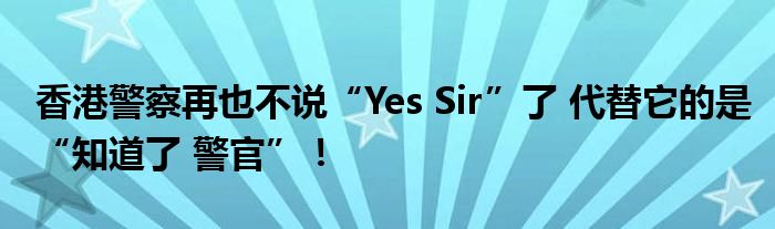 從英語變成中文,小小的變化,卻非常重要。在香港回歸25周年之際,讓我們向“Yes Sir”說聲再見,喊一聲“知道,長官!”