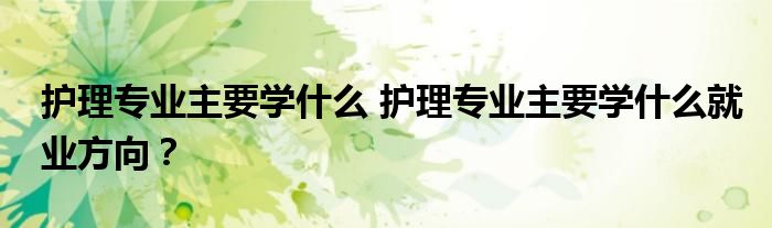 護理專業主要學習:病理學、生理學、藥理學、健康評估、護理學基礎、內科護理學、外科護理學、婦產科護理學、兒科護理學、人體解剖學、急救護理學、康復護理學、社區護理學、老年護理學、護理心理學、人體結構與功能、病原生物與免疫學、生物化學、中醫護理等等。