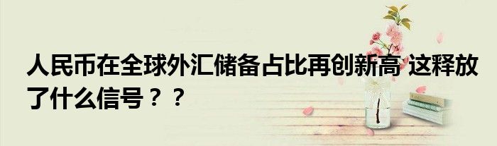 【人民幣在全球外匯儲備占比再創新高】據媒體報道,當地時間周四,國際貨幣基金組織(IMF)發布的最新數據顯示,截至今年第一季度末,人民幣在全球外匯儲備中的占比再創紀錄新高 ,而美元占比同比小幅下滑。