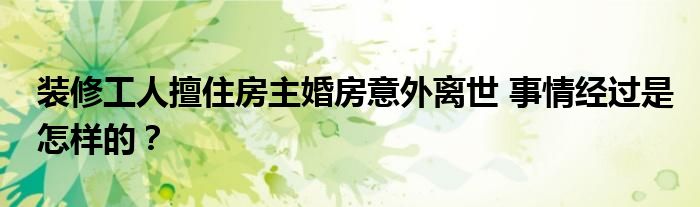 近日,長沙的一位裝修工人在房主需要裝修的婚房內突發意外,不幸離世。據悉,該婚房當時已經停工,該工人是晚上從別墅的窗戶進去,擅自住在里面。在有關部門的調解下,出于人道主義,黃女士對裝修工人的家屬進行了兩萬八千元的賠償。