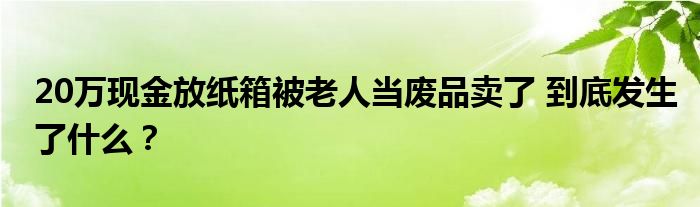 #20萬現金放紙箱被老人當廢品賣了#