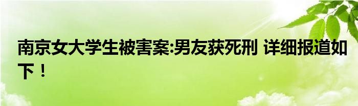 #南京女大學生被害案:男友獲死刑#最新消息#南京女大學生被害案:男友獲死刑#!每一條生命都有其存在的意義,他人無權對此進行剝奪,此前南京女大學生被害案引發國人關注,很多人要求嚴懲兇手,目前該案件有了新進展,法院是如何判決的?