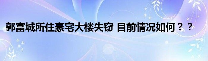 【郭富城所住豪宅大樓失竊】今日,一篇關(guān)于郭富城所住豪宅大樓失竊的報(bào)道上了各大熱搜榜,引得網(wǎng)民關(guān)注和熱議。前有林青霞別墅著火,后有郭富城豪宅被盜。到底是怎么回事?目前情況如何?