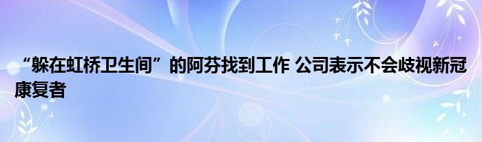 【"躲在虹橋衛生間"的阿芬找到工作】最近,一篇關于新冠康復者求職艱難躲在上海虹橋火車站衛生間的文章在網上引得網民關注和熱議。據悉,阿芬已經找到工作了。公司說不會歧視新冠康復者。