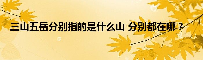 【三山五岳分別指的是什么山】三山五岳遍布華夏大地,或綿延千里,或高聳平原盆地之上,格外險峻。其中三山是華夏遠古傳說之地;五岳是中華文化的興盛之地。三山五岳是中華民族的搖籃,是華夏祖先最早定居的地方,對中華民族的歷史文化發展與研究有著重要的意義。