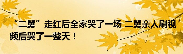 【"二舅"走紅后全家哭了一場】近日,一段關于《回村三天,二舅治好了我的精神內耗》的視頻在網上流傳,意外走紅,"二舅"走紅后全家哭了一場。這一段十一分鐘的視頻里面的諸多道理都值得每個人看一遍。