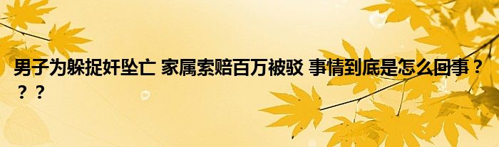 【男子為躲捉奸墜亡 家屬索賠百萬被駁】在現在這個時代,屢屢都有抓奸在床的新聞發生,近期一則消息傳出,男子為躲捉奸墜亡,家屬索賠百萬被駁,事件究竟是怎么回事呢?我們一起看看。