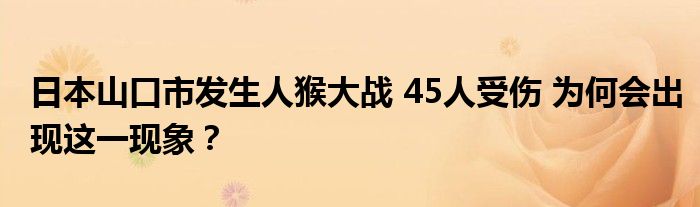 【日本山口市發(fā)生人猴大戰(zhàn) 45人受傷】據(jù)日媒消息,最近3個星期以來,日本山口市及附近的民眾頻繁遭到野猴獼猴攻擊,至少45人受傷。為何會出現(xiàn)這一現(xiàn)象?