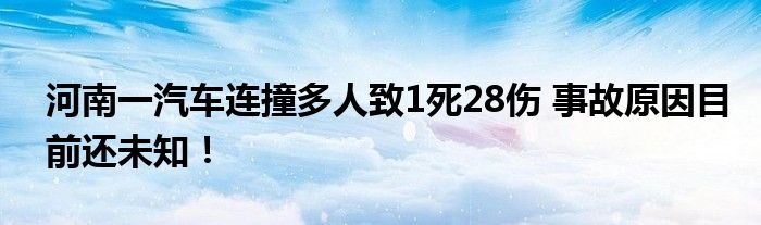 【河南一汽車連撞多人致1死28傷】7月28日6時52分,舞陽縣張家港路一輛白色越野車交通肇事逃逸,致29人受傷。其中,3人傷勢較重(1人經搶救無效死亡),輕傷和輕微擦傷26人。