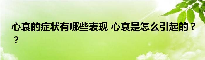 【心衰的癥狀有哪些表現】專家指出,心衰是由于心肌梗塞、心肌病等引起的心肌損傷,造成心肌結構和功能的變化,最后導致心室泵血或充盈功能低下。心衰的癥狀有哪些表現?
