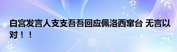 白宮發(fā)言人支支吾吾回應(yīng)佩洛西竄臺