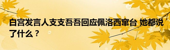 【白宮發言人支支吾吾回應佩洛西竄臺】美國眾議院議長佩洛西昨天傍晚結束竄訪臺灣地區。近年來,美方口頭上聲稱堅持一個中國政策,但言行卻不一致。