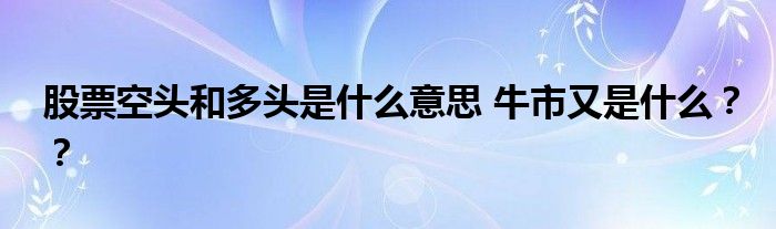 【股票空頭和多頭是什么意思】玩股的朋友都知道,股市中有非常多行業術語,例如多頭和空頭,他們兩個分別是什么意思呢?
