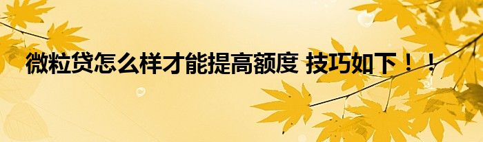 【微粒貸怎么樣才能提高額度】微粒貸操作簡單、放款快, 受到了很多人的使用。據悉微粒貸沒有辦法人工調整額度的,任何第三方說可以幫忙提額的都是騙人的,千萬不要上當受騙。