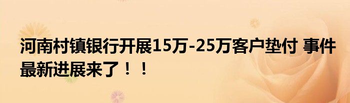 【河南村鎮(zhèn)銀行開展15萬-25萬客戶墊付】近日,河南村鎮(zhèn)銀行取款難事件仍在發(fā)酵。7月份以來,河南村鎮(zhèn)銀行開展客戶墊付,已經(jīng)有不少客戶取到了錢。