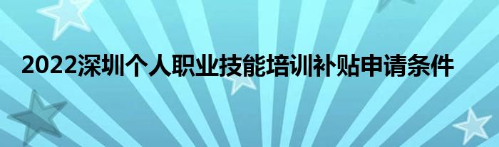 深圳個人職業技能培訓補貼申請條件