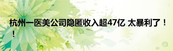 【杭州一醫美公司隱匿收入超47億】近日,杭州古名文化藝術策劃有限公司新增一則行政處罰。