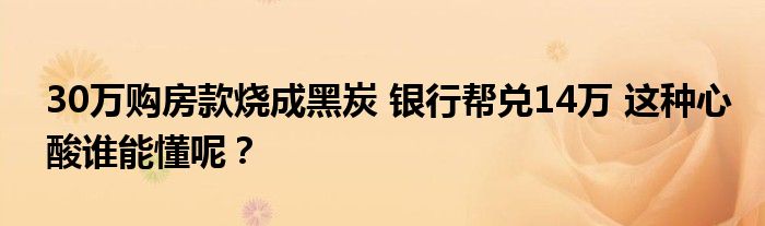 30萬購房款燒成黑炭 銀行幫兌14萬