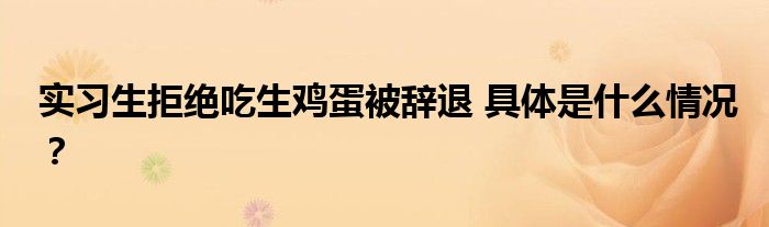 【實習生拒絕吃生雞蛋被辭退】近日,實習生拒絕吃生雞蛋被辭退的話題引發網絡熱議。到底是怎么回事?