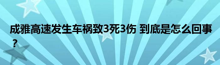 【成雅高速發生車禍致3死3傷】3死3傷!成雅高速發生嚴重貨車事故!