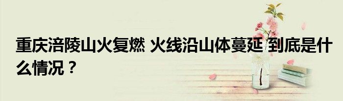 【重慶涪陵山火復燃 火線沿山體蔓延】據媒體重磅消息,重慶涪陵江北街道山火發生復燃,火線沿山體蔓延,此前一度得到控制!眾所周知,山火一旦發生,后果不堪設想,目前消防員仍然還在撲救當中。
