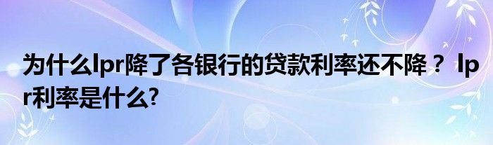 【為什么lpr降了各銀行的貸款利率還不降】之所以LPR降了但各銀行的貸款利率還不降,是因為并非所有的銀行貸款利率都與LPR相關,那些與LPR不相干的銀行貸款利率自然不受LPR下調的影響。
