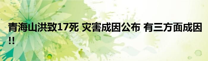 【青海山洪致17死 災害成因公布】據媒體消息,青海省西寧市大通回族土族自治縣“8·18”山洪災害截至目前已造成17人死亡,成功營救20名失聯人員,仍有17人失聯。
