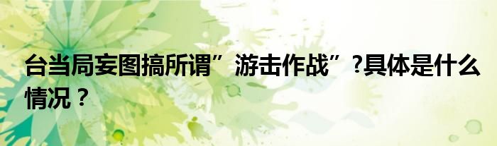 【臺當局妄圖搞所謂"游擊作戰"?】近日,臺當局的謀獨謊言被無情戳穿,臺當局妄圖搞所謂"游擊作戰"?