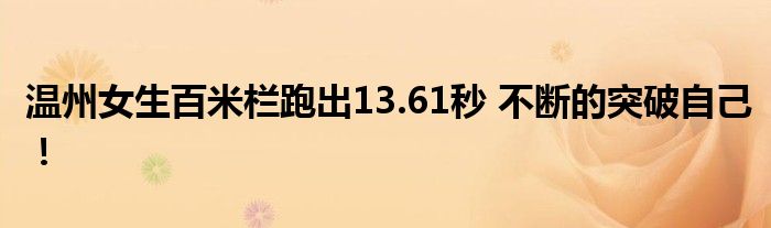 【溫州女生百米欄跑出13.61秒】16日下午,在2022年全國中學生田徑錦標賽中,來自溫州第二高級中學學生董嘉欣以13.61秒的成績拿到女子100米欄冠軍,并破了該賽事的賽會紀錄,達到國家健將水平。17日,從溫州第二高級中學了解到,目前董嘉欣作為體育特招生已被北京大學錄取,即將赴京求學。
