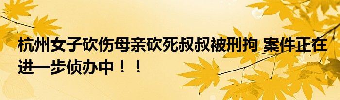 【杭州女子砍傷母親砍死叔叔被刑拘】老一輩的人常講,一家人有什么事情是過不去的?近期有消息傳出,杭州一女子砍傷母親砍死叔叔被刑拘,具體是什么情況?