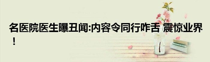 名醫院醫生曝丑聞:內容令同行咋舌 震驚業界!