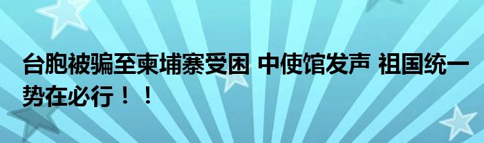 【臺胞被騙至柬埔寨受困 中使館發聲】連日來,多位臺灣人被騙至柬埔寨,中國大使館發聲如下。