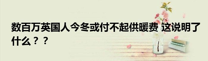 【數(shù)百萬英國人今冬或付不起供暖費(fèi)】近期,一篇“數(shù)百萬英國人今冬或付不起供暖費(fèi)”的報(bào)道登上了各大搜索引擎的熱搜榜,在網(wǎng)上引起了眾多網(wǎng)民的關(guān)注和熱議,小編也第一時(shí)間在網(wǎng)上查閱整理了一些相關(guān)資訊,下面一起來看下。