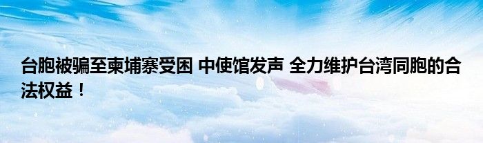 臺(tái)胞被騙至柬埔寨受困 中使館發(fā)聲