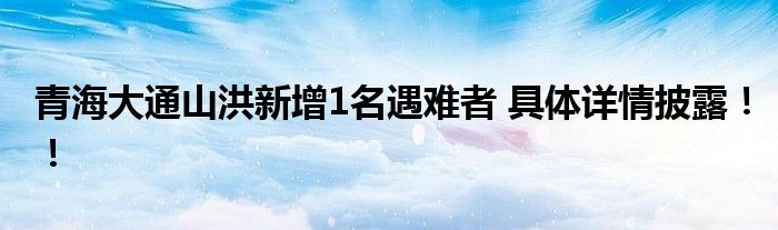 青海大通山洪新增1名遇難者