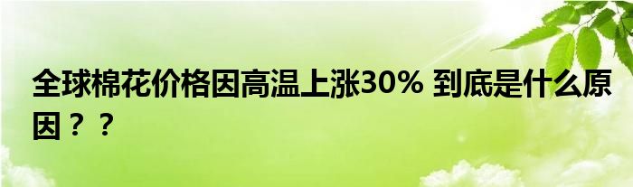 【全球棉花價(jià)格因高溫上漲30%】近期,一篇“全球棉花價(jià)格因高溫上漲30%”的報(bào)道登上了各大搜索引擎的熱搜榜,在網(wǎng)上引起了眾多網(wǎng)民的關(guān)注和熱議,小編也第一時(shí)間在網(wǎng)上查閱整理了一些相關(guān)資訊,下面一起來看下。