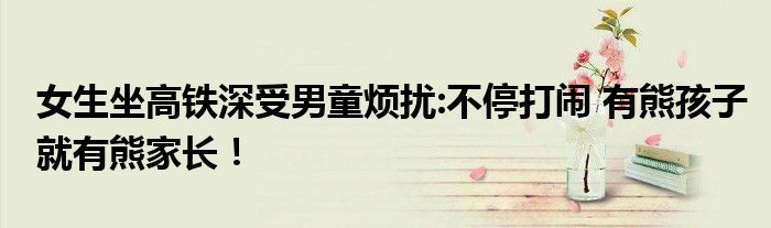 【女生坐高鐵深受男童煩擾:不停打鬧】女生坐高鐵深受熊孩子煩擾,全程爬上爬下瘋狂打鬧,家長(zhǎng)毫無(wú)作為!