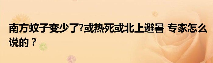 今日消息,#南方蚊子變少了?或熱死或北上避暑#一熱門話題沖上平臺(tái)熱搜引發(fā)眾多關(guān)注與討論。據(jù)悉,在很多地方,高溫已經(jīng)持續(xù)了兩三個(gè)月,大蚊子們熱得沒(méi)心思活動(dòng)和繁殖,未成年蚊子們又被熱得活不下來(lái),蚊子自然少了。