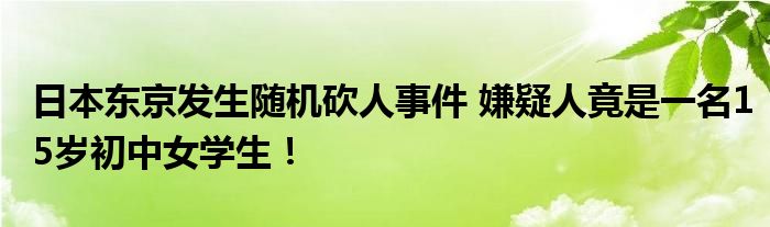 【日本東京發(fā)生隨機(jī)砍人事件】15歲的年紀(jì),是多么美好的年紀(jì)。這個年紀(jì)的女孩子,還在上中學(xué)。然而,有媒體報道,在東京,一名15歲初中女學(xué)生竟然持刀砍人!她到底經(jīng)歷了什么?