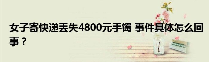 【女子寄快遞丟失4800元手鐲】大家寄快遞的時候一定要小心!據悉,近日,一女子寄快遞丟失4800元手鐲! 到底怎么回事?名貴手鐲怎么會不翼而飛的?