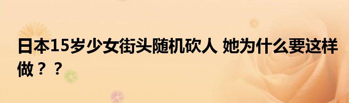 【日本15歲少女街頭隨機砍人】據外媒22日報道,當地時間20日晚,日本東京澀谷區街頭發生一起持刀隨機砍人事件,一名15歲的女孩持刀將一對母女砍成重傷。